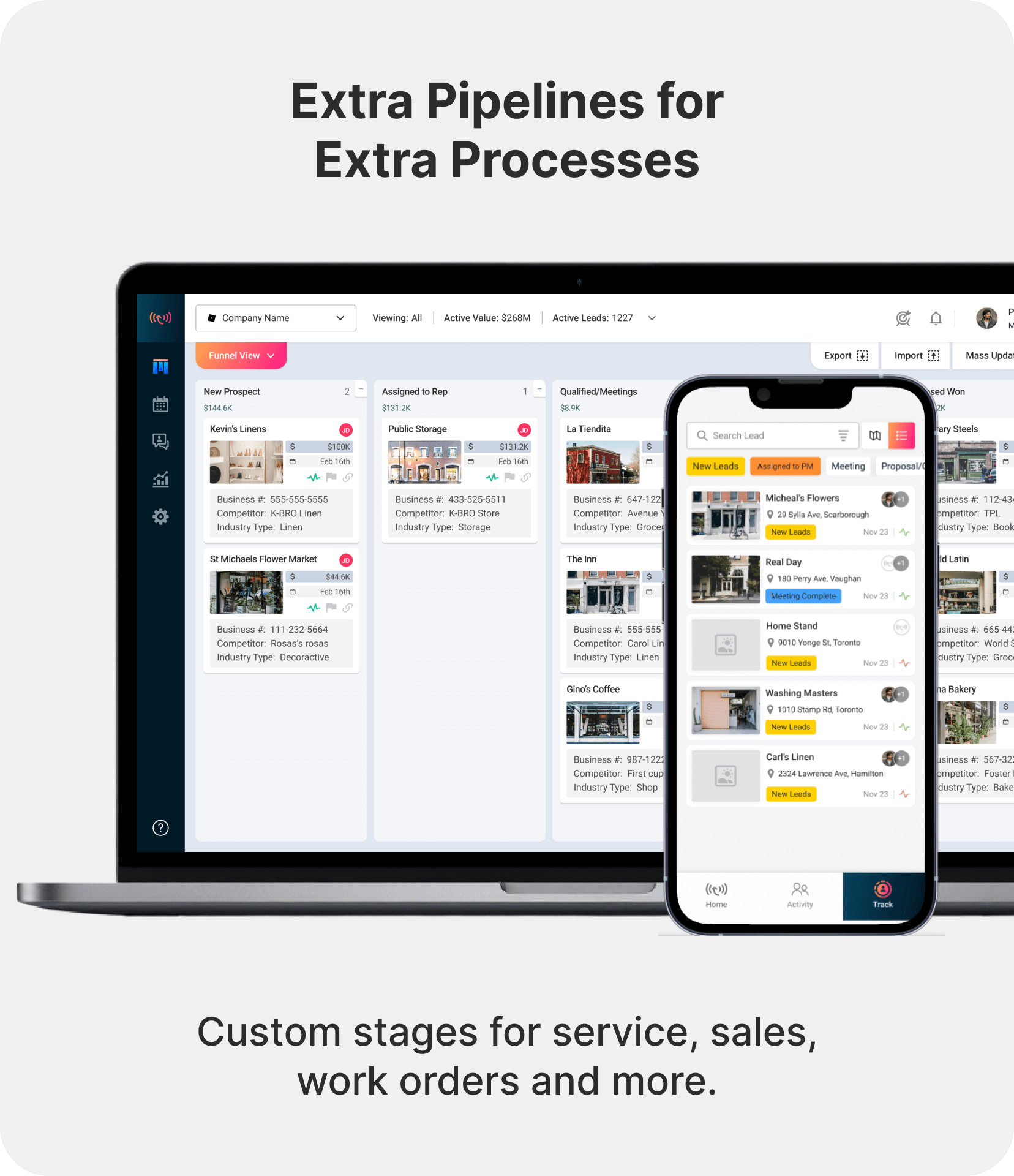 Additional pipelines & stages to track buyer, customer & service journeys. Create pipelines around any process or project to seamlessly track Sales & Operations.